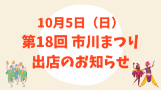 【お知らせ】10月5日(日)第18回 市川まつりに出店します!!!